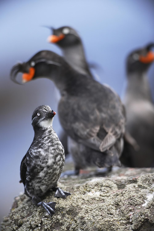 Least and crested auklets, seabirds that live in and around the Aleutian Islands. Photo by Cornelius Schlawe.