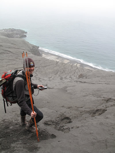 Biologist Jeff Williams on Kasatochi Island one year after its 2008 eruption. Photo by Ned Rozell.