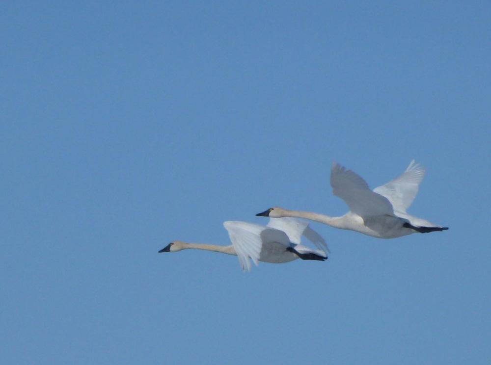 HOWEVER — this winter — 2016-2017 — a very small number of Tundra Swans and almost no Snow Geese showed up. I counted a small flock of 20 Tundra Swans and observed only an occasional Snow Goose. Other local bird watchers reported the same. We can’t explain the birds’ absence this year; we’re hoping for their return in winter 2017-18.