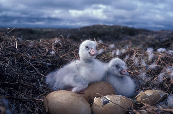 Cygnets, newly hatched tundra swans, in western Alaska. Photo by Craig Ely.